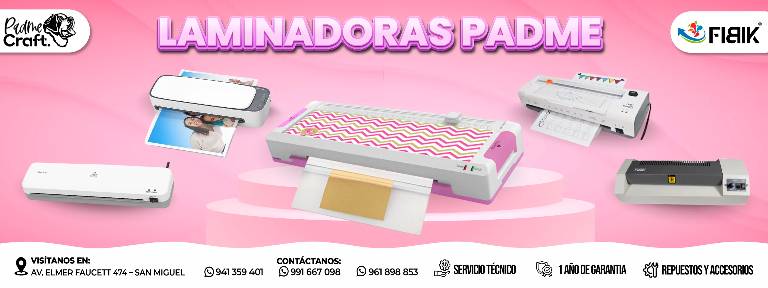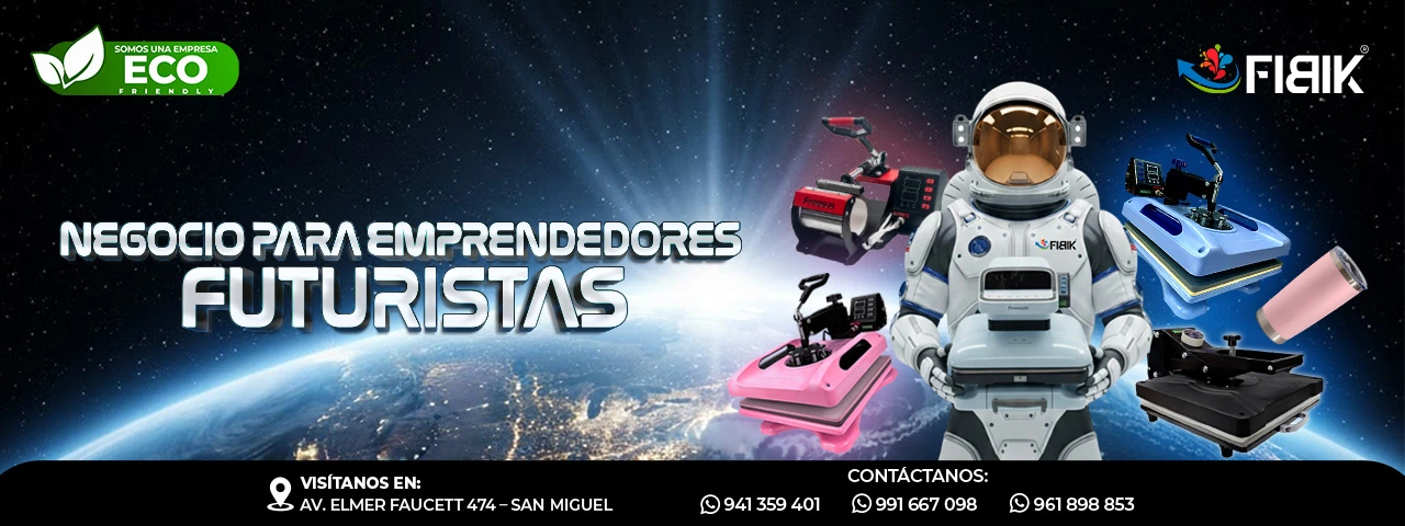 Ofrecemos maquinaria para sublimación (prensas, equipos multifunción), plotters de corte, anilladoras, insumos como papel para sublimación, tintas FIBIK-INK y tazas para sublimación, además de kits para emprendimientos y artículos de merchandising.